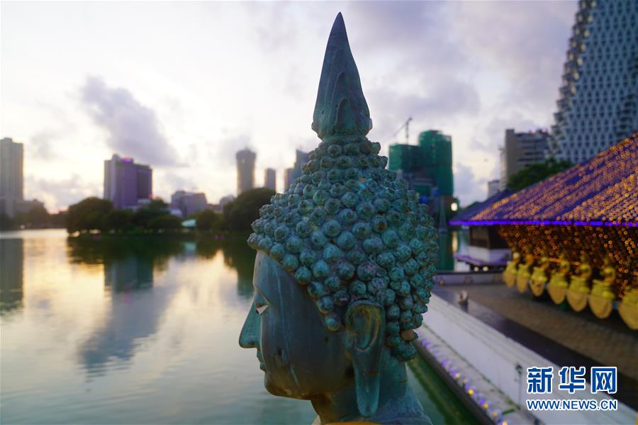 這是夕陽下的斯里蘭卡科倫坡水中廟佛像(5月27日攝)。 在科倫坡貝拉湖上有一座木造樓閣——水中廟。木造建筑上面覆蓋著藍瓦,外圍環(huán)繞著線條優(yōu)美的佛像。樓閣外高臺上供奉的佛像,與不遠處的高層建筑相互映照。祥和寧靜的水中廟已成為人們修心、祈福的重要場所。 新華社記者唐璐攝