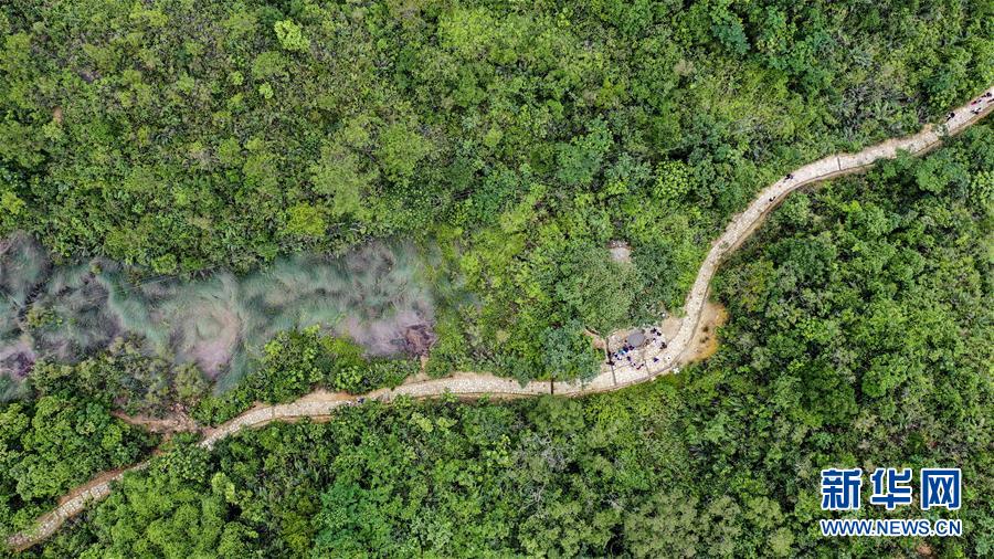 6月1日拍攝的蜿蜒于鳳凰山間的香山古驛道(無(wú)人機(jī)拍攝)。