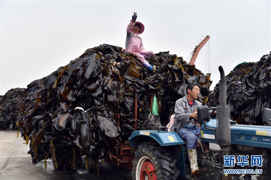 6月5日,在榮成市尋山街道青魚(yú)灘村,漁民在收獲海帶。 近日,山東省榮成市迎來(lái)海帶收獲季。據(jù)悉,榮成市海帶養(yǎng)殖面積14.5萬(wàn)畝,年產(chǎn)海帶43.3萬(wàn)噸以上。 新華社記者王凱攝