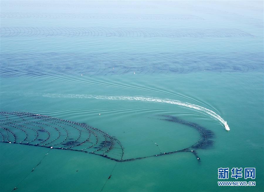 4月10日,霞浦縣長(zhǎng)春鎮(zhèn)海域,海帶養(yǎng)殖戶在用船只收獲海帶(無(wú)人機(jī)拍攝)。近日,福建省寧德市霞浦縣30余萬(wàn)畝養(yǎng)殖海帶進(jìn)入收獲季節(jié),當(dāng)?shù)仞B(yǎng)殖戶搶抓晴好天氣,收獲海帶。海帶養(yǎng)殖是霞浦縣群眾增收致富的支柱產(chǎn)業(yè)。2018年該縣海帶產(chǎn)量14萬(wàn)余噸。新華社記者 姜克紅 攝