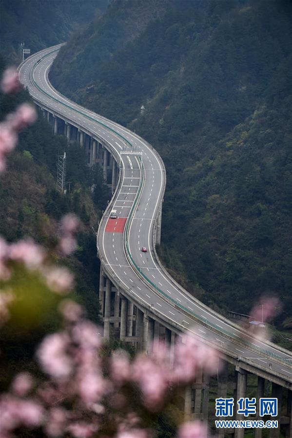 貴州思劍高速公路劍河縣岑松鎮(zhèn)段的春季景觀(3月23日攝)。陽(yáng)春時(shí)節(jié),貴州思(南)劍(河)高速公路劍河縣岑松鎮(zhèn)附近的桃花和梨花陸續(xù)開(kāi)放。 新華社記者楊文斌攝