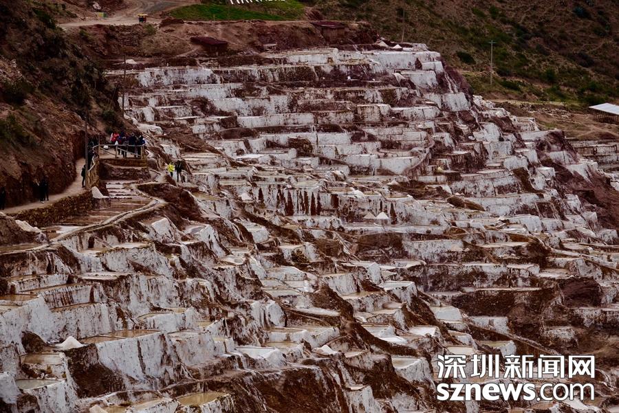 大面積鹽池閃閃發(fā)光,格外搶眼,宛如鑲嵌在安第斯山谷中的白色馬賽克。李仁奇攝