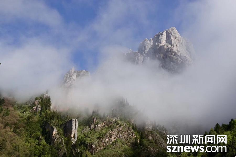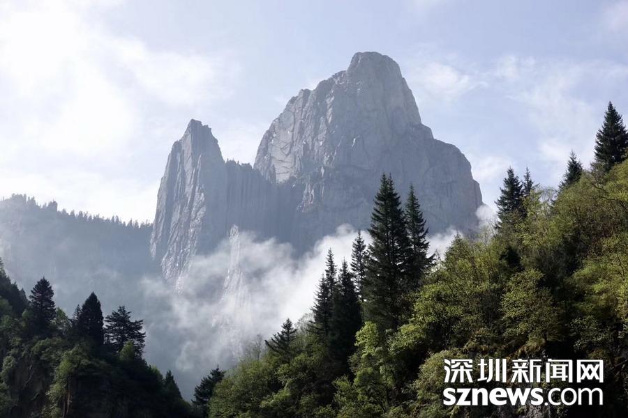 乘坐通往核心景區(qū)的旅游車進入臨近壯觀山體的地段,從獨特的角度看到了云霧繚繞的山峰,真有置身仙境的感覺。李仁奇攝