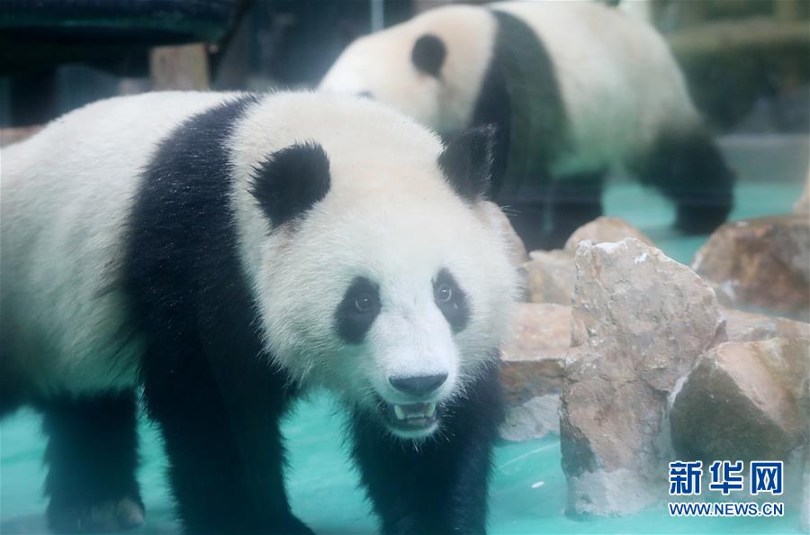6月18日,大熊貓“和風(fēng)”(前)透過玻璃幕墻向外張望。 當(dāng)日,來自四川的大熊貓兄弟“和風(fēng)”與“星光”飛抵上海,正式開始了在上海動物園為期三年的生活。為迎接這對“風(fēng)光兄弟”,上海動物園將原有的大熊貓館擴(kuò)建并裝修一新,空調(diào)、水池、游樂場以及竹葉儲存間等配置齊全。 新華社記者 方喆 攝
