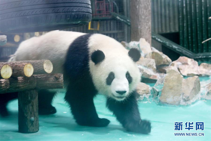 6月18日,大熊貓“和風(fēng)”在裝修一新的大熊貓館內(nèi)散步。 當(dāng)日,來自四川的大熊貓兄弟“和風(fēng)”與“星光”飛抵上海,正式開始了在上海動物園為期三年的生活。為迎接這對“風(fēng)光兄弟”,上海動物園將原有的大熊貓館擴(kuò)建并裝修一新,空調(diào)、水池、游樂場以及竹葉儲存間等配置齊全。 新華社記者 方喆 攝