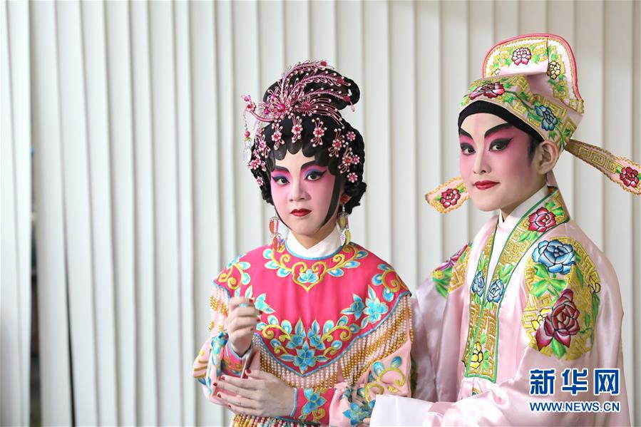 陸瑞徽(左)和利文喆在表演折子戲《艷曲醉周郎》(6月8日攝)。 聲輝粵劇推廣協(xié)會成立于2003年,是香港重要粵劇藝術(shù)團體之一,致力于向青少年推廣粵劇。協(xié)會目前有兩個初班,3個中班,一個青少年班。粵劇又稱“廣東大戲”,表演技藝包括“唱做念打”,即唱功、身段、臺詞、武打,主要流行于廣東、廣西和香港、澳門等地區(qū)。2009年,粵劇被列入聯(lián)合國教科文組織人類非物質(zhì)文化遺產(chǎn)代表作名錄,今年正逢十周年。 新華社記者 吳曉初 攝