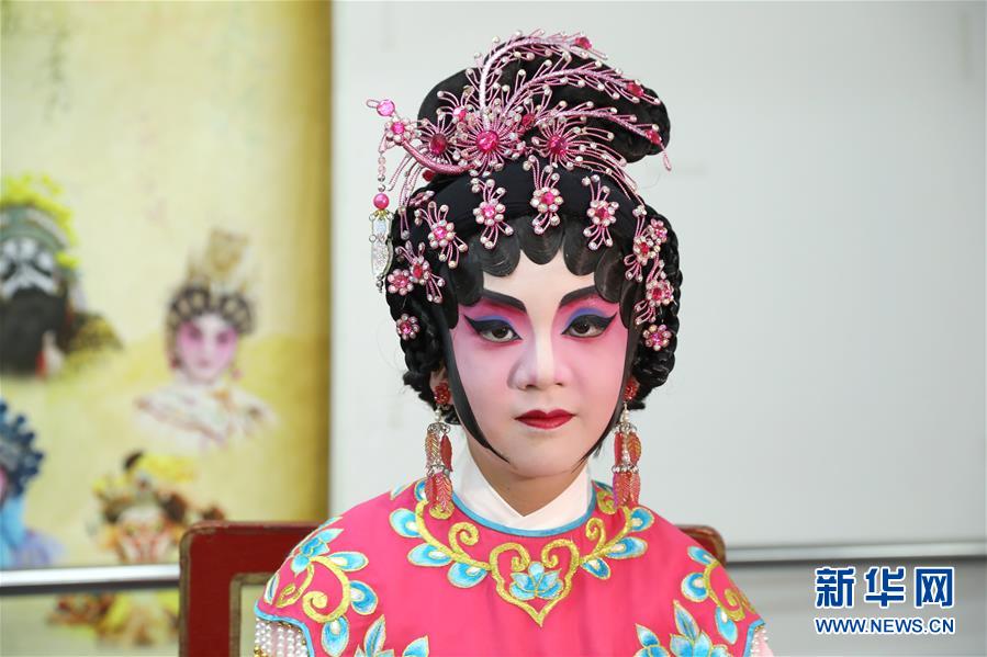 粵劇小演員陸瑞徽在準備折子戲《艷曲醉周郎》的表演(6月8日攝)。 聲輝粵劇推廣協(xié)會成立于2003年,是香港重要粵劇藝術(shù)團體之一,致力于向青少年推廣粵劇。協(xié)會目前有兩個初班,3個中班,一個青少年班?;泟∮址Q“廣東大戲”,表演技藝包括“唱做念打”,即唱功、身段、臺詞、武打,主要流行于廣東、廣西和香港、澳門等地區(qū)。2009年,粵劇被列入聯(lián)合國教科文組織人類非物質(zhì)文化遺產(chǎn)代表作名錄,今年正逢十周年。 新華社記者 吳曉初 攝