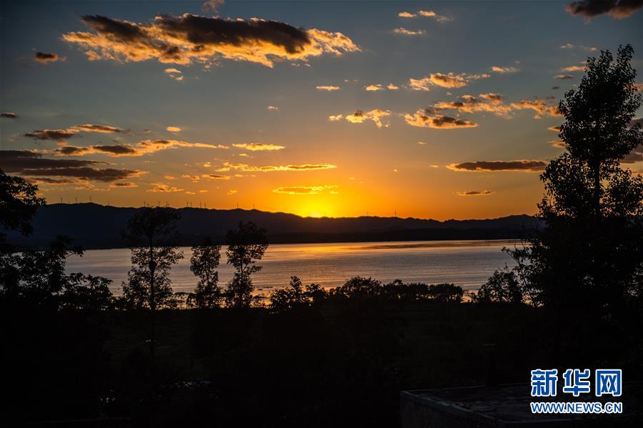 草海國(guó)家級(jí)自然保護(hù)區(qū)落日景色(6月20日攝)。