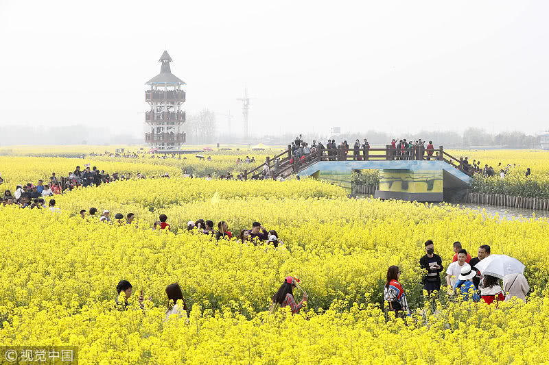 2019年4月7日,江蘇省興化市千垛菜花景區(qū)迎來(lái)旅游高峰期,數(shù)萬(wàn)游客前來(lái)欣賞盛開的油菜花,樂享假日好時(shí)光。
