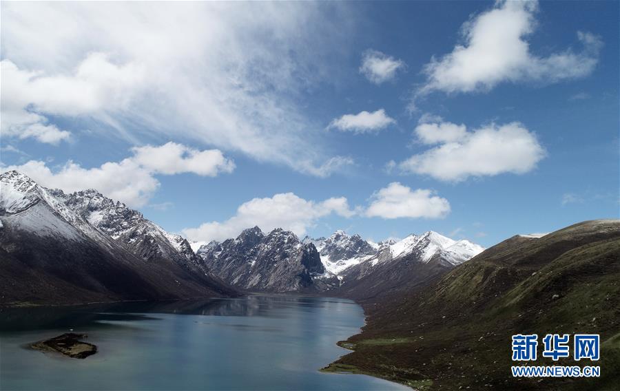 在年保玉則,雪山與湖泊相映成畫(5月21日無人機拍攝)。新華社記者 張宏祥 攝