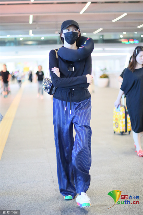 關(guān)曉彤淡定抱臂行走 脖子上掛U型枕毫無偶像包袱