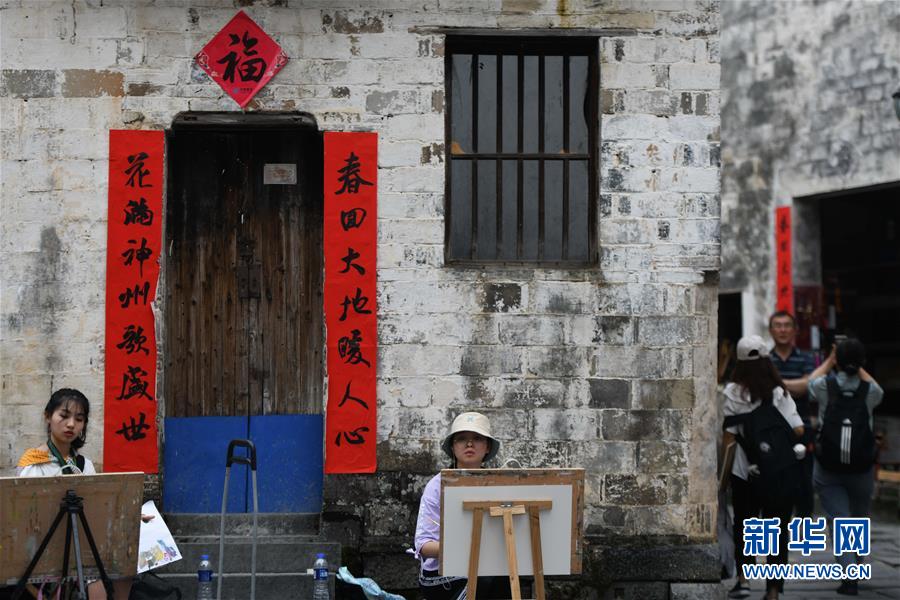 4月24日,繪畫愛好者在西遞風(fēng)景區(qū)寫生。近日,隨著氣溫升高,位于安徽省黟縣的古村落西遞和宏村春意盎然,景色如畫。大批繪畫愛好者前來寫生,用畫筆描繪古村春色。 新華社記者 張端 攝