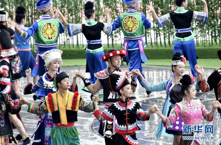 8月4日,來自貴州省黔東南苗族侗族自治州的演員在表演民族歌舞。新華社記者 李欣 攝