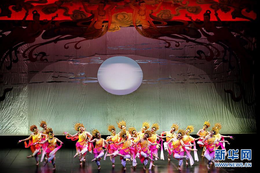 8月7日晚,舞蹈演員們在表演中。 當(dāng)日,“舞出中國風(fēng)”慶祝新中國成立70周年公益展演在上海國際舞蹈中心舉行。舞蹈家黃豆豆攜手30位青年舞者進(jìn)行志愿演出,并與多家藝術(shù)團(tuán)隊(duì)合作,共同呈現(xiàn)了一臺(tái)具有濃郁中國風(fēng)的原創(chuàng)舞專場,為新中國成立70周年獻(xiàn)禮。 新華社記者 劉穎 攝