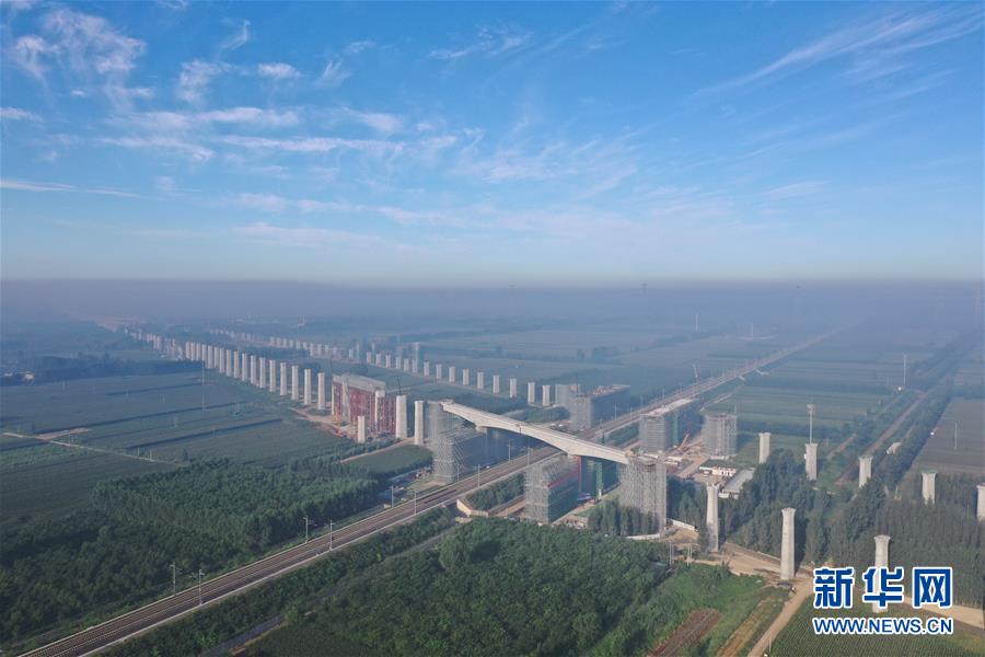 這是京雄城際鐵路施工現(xiàn)場(3月21日無人機拍攝)。新華社記者牟宇攝