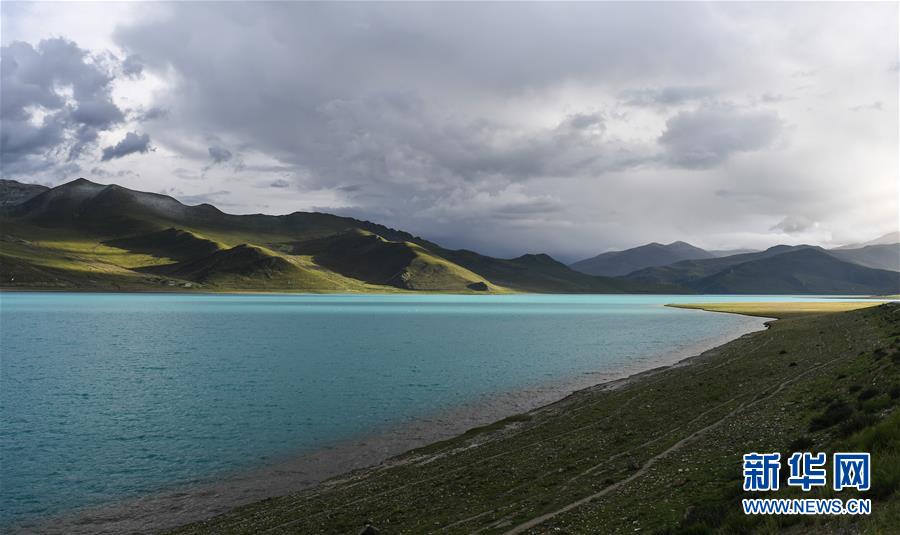8月31日無人機(jī)拍攝的羊卓雍錯(cuò)風(fēng)光。 新華社記者 晉美多吉 攝