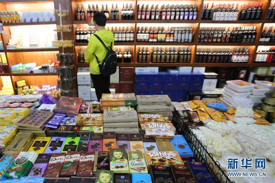 這是9月4日在新疆塔城地區(qū)巴克圖口岸的絲路文化商品城內(nèi)拍攝的進(jìn)口產(chǎn)品。 新華社記者沙達(dá)提攝