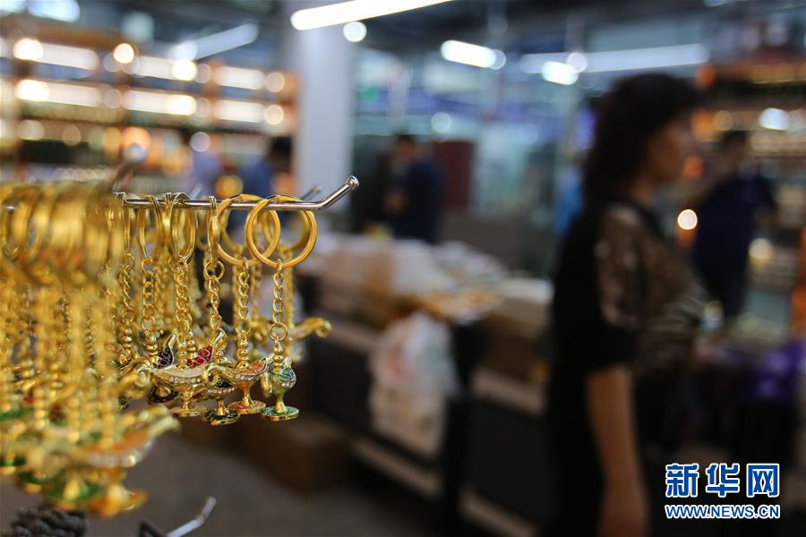 9月4日,在新疆塔城地區(qū)巴克圖口岸,顧客在絲路文化商品城內(nèi)選購(gòu)商品。 新華社記者沙達(dá)提攝