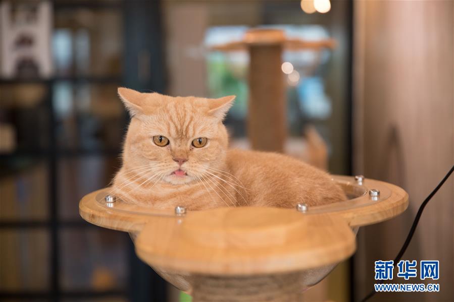 這是9月9日拍攝的曼谷動物咖啡館的一只貓。新華社記者 張可任 攝