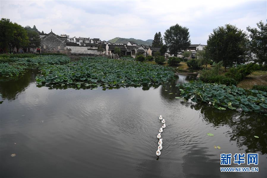 這是呈坎村內(nèi)的荷塘(8月28日攝)。新華社記者劉軍喜攝