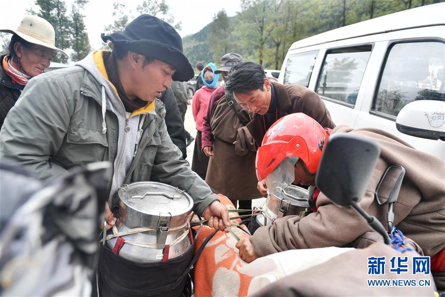 9月8日,在四川省康定市,牧民騎著摩托來到一家當(dāng)?shù)貙iT生產(chǎn)牦牛乳制品公司的工廠送牦牛奶。新華社記者孫瑞博攝