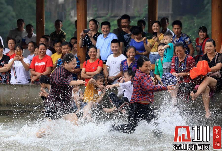 在廣西柳州市融安縣長(zhǎng)安鎮(zhèn)安寧村大袍屯,人們?cè)谒匣@球比賽中拼搶。