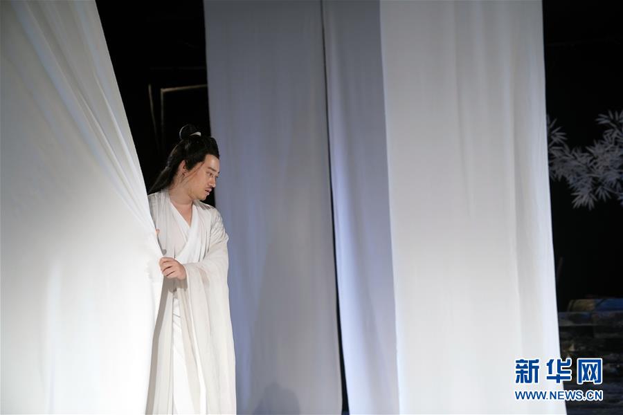 9月16日,演員在話(huà)劇《廣陵絕》中表演。 當(dāng)日,話(huà)劇《廣陵絕》在北京人藝實(shí)驗(yàn)劇場(chǎng)上演。新華社記者 金良快 攝