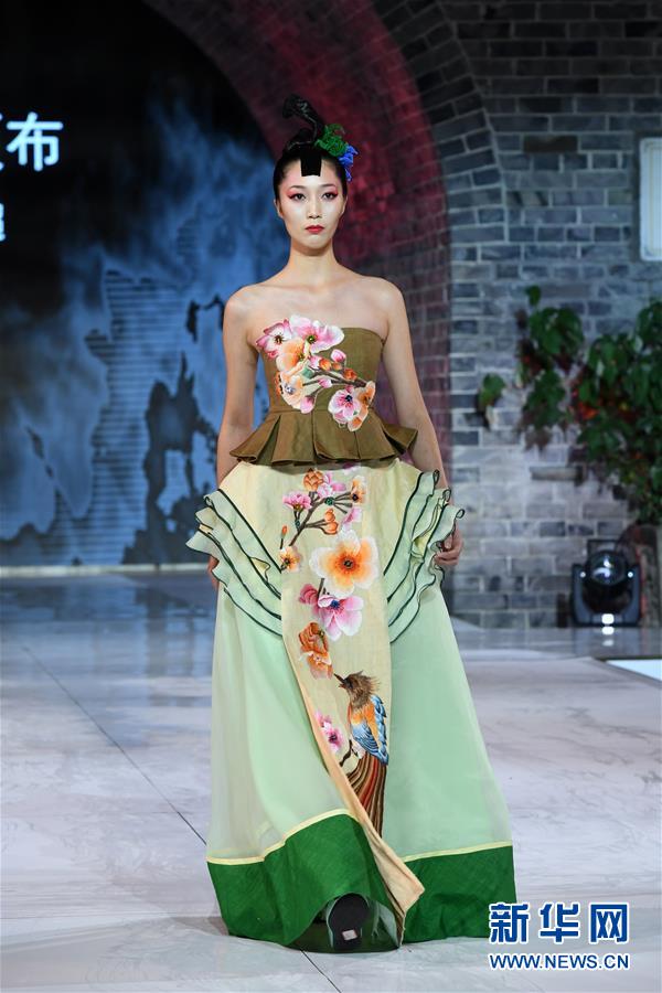 9月25日,模特在榮昌夏布·張義超非遺時尚大秀上展示時裝設(shè)計師張義超的時裝作品。