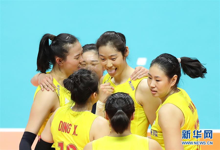 9月23日,中國隊球員朱婷(中)在得分后慶祝。當(dāng)日,在日本札幌舉行的2019年女排世界杯賽第二階段A組循環(huán)賽中,中國隊以3比0戰(zhàn)勝美國隊。新華社記者杜瀟逸攝