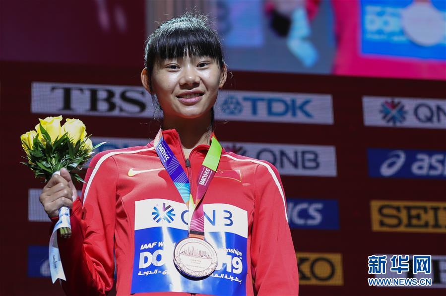 9月30日,季軍中國選手楊柳靜在頒獎儀式上。新華社記者 王婧嬙 攝