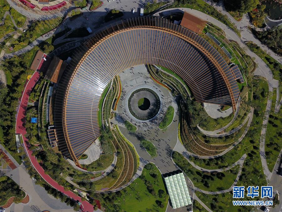 這是北京世園會中國館(10月7日無人機拍攝)。新華社記者張晨霖攝