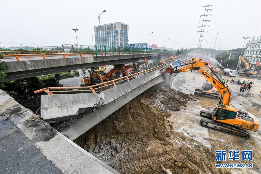 這是10月11日拍攝的江蘇無錫高架橋側(cè)翻事故救援現(xiàn)場。新華社記者李博攝