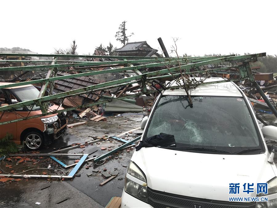 10月12日,在日本千葉縣市原市,建筑物和車(chē)輛遭龍卷風(fēng)襲擊后被損毀。新華社記者 鄧敏 攝