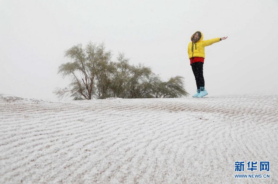10月15日,游客在寧夏中衛(wèi)市沙坡頭景區(qū)欣賞沙漠雪景。深秋時節(jié),位于騰格里沙漠邊緣的寧夏中衛(wèi)市沙坡頭景區(qū)迎來一場降雪。漫漫黃沙被覆蓋在皚皚白雪之下,呈現(xiàn)出一種別樣的美。新華網杜文杰攝