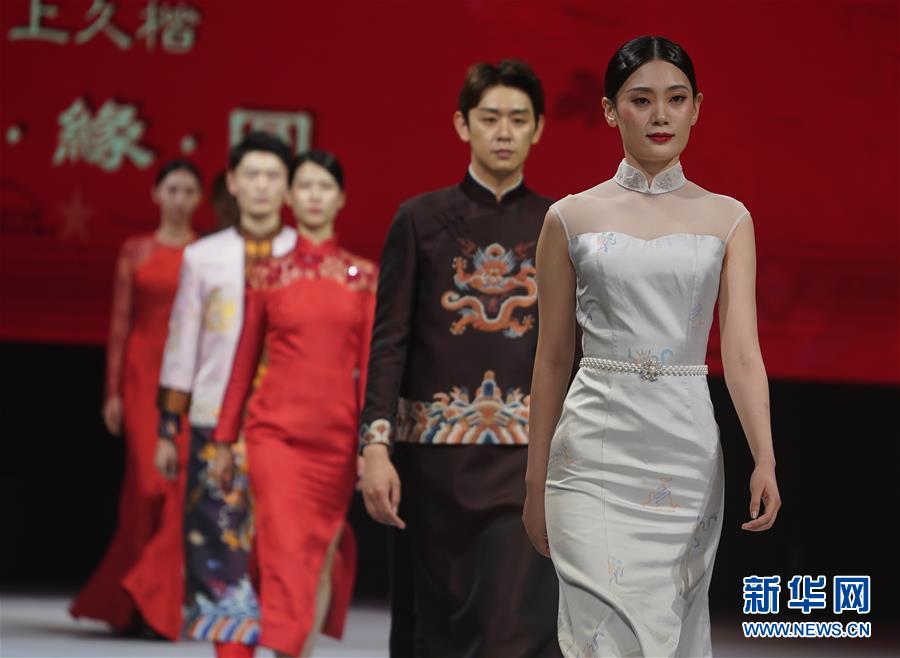 10月16日,模特在展示婚慶禮服。 當(dāng)日,“愿·緣·圓”上久楷婚慶主題秀在江蘇省蘇州市吳江區(qū)盛澤鎮(zhèn)舉行。 新華社記者 季春鵬 攝