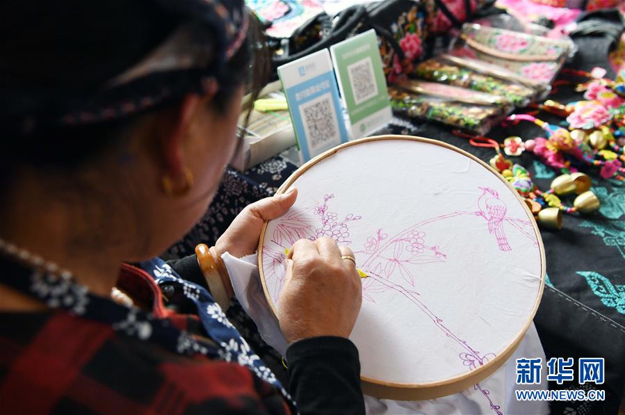 10月16日,團結村的一名“巧媳婦”在刺繡。 新華社記者 楊宗友 攝