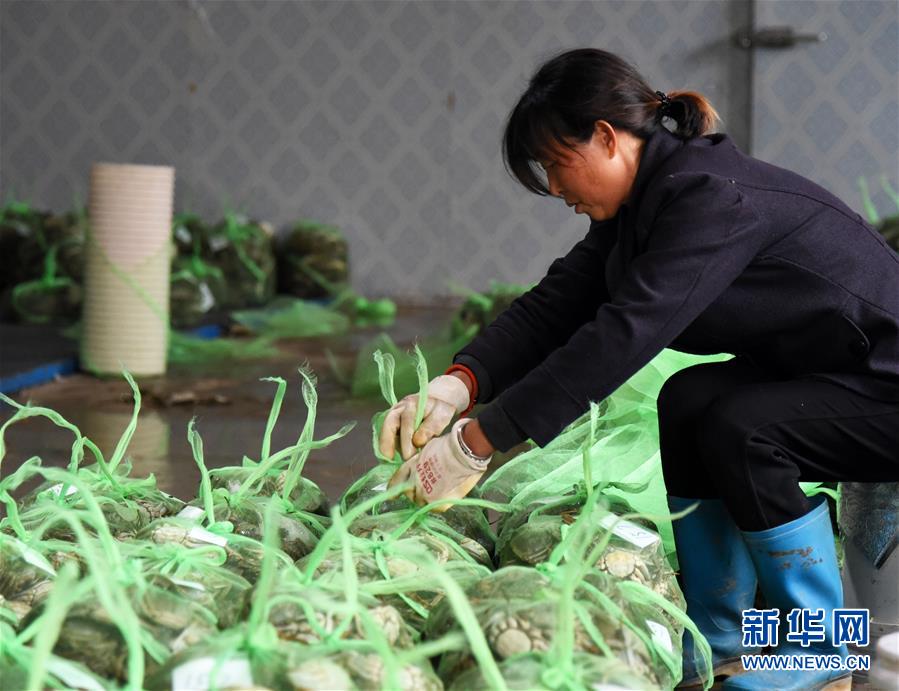 10月17日,東營市惠澤農(nóng)業(yè)科技有限公司黃河口大閘蟹養(yǎng)殖區(qū)的工人在包裝大閘蟹。新華社記者 王凱 攝