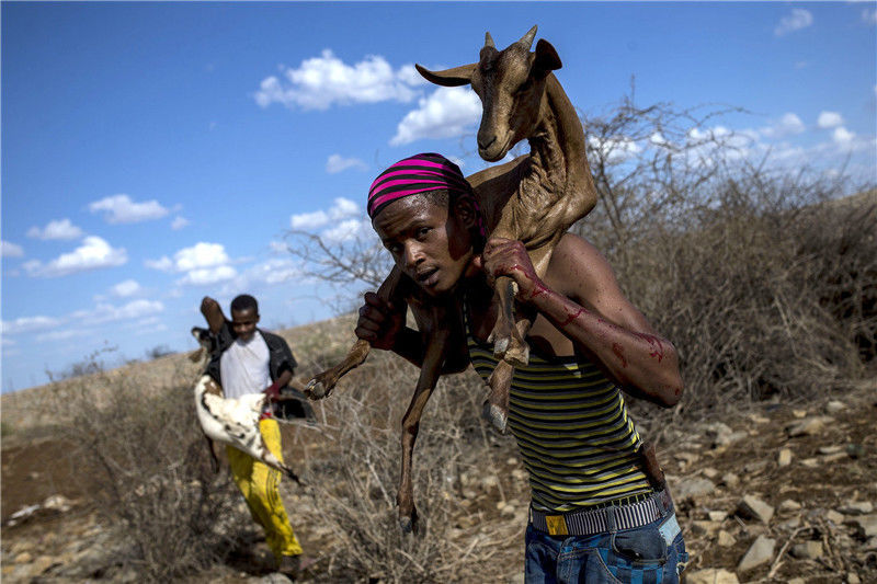當(dāng)?shù)貢r間2017年3月29日,索馬里,索馬里海灣州的難民營。索馬里目前正遭遇嚴(yán)重旱災(zāi),每天超過3000人因干旱逃離家園。