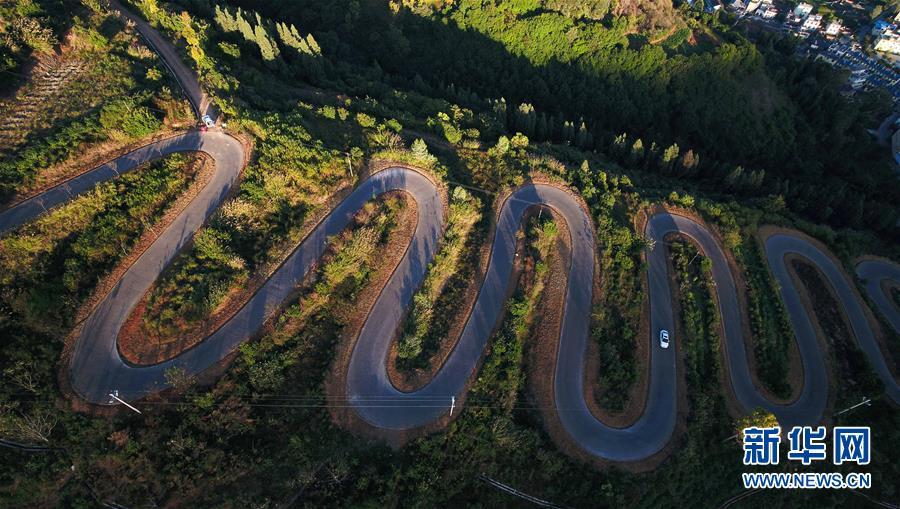 云南宜良“68道拐”位于云南省昆明市宜良縣,是宜良縣城通往靖安哨村的盤(pán)山公路。公路依山梁而修建,蜿蜒曲折,6.3公里的路程共有68道彎。新華社記者楊牧源攝