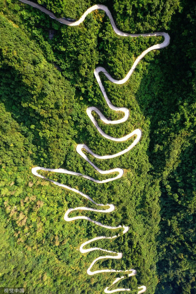 天門(mén)山盤(pán)山公路位于湖南省張家界市境內(nèi)的國(guó)家森林公園天門(mén)山上,盤(pán)山公路全長(zhǎng)10.77公里,海拔從200米急劇提升到1300米,大道兩側(cè)絕壁千仞,空谷幽深,共計(jì)99個(gè)彎,180度急彎此消彼長(zhǎng),似玉帶環(huán)繞,航拍鏡頭下蜿蜒曲折的道路彎彎緊連,層層迭起,宛如迷宮般的“納斯卡線條”,被譽(yù)為“天下第一公路奇觀”,同時(shí)它也是世界上最危險(xiǎn)的十大公路之一。