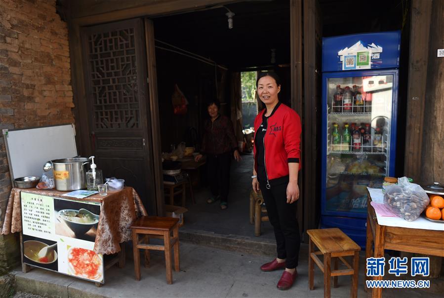 10月24日,班竹村村民王彩妃(前)站在自家的特色小吃攤前。王彩妃曾在縣城打工,村里旅游業(yè)發(fā)展起來(lái)后回家開(kāi)了個(gè)小吃攤,收入比以前大大增加。新華社記者韓傳號(hào)攝
