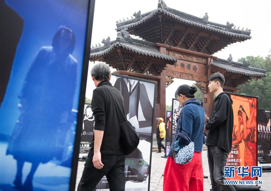 10月25日,觀眾經(jīng)過烏鎮(zhèn)廣場上的戲劇海報。新華社記者翁忻旸攝