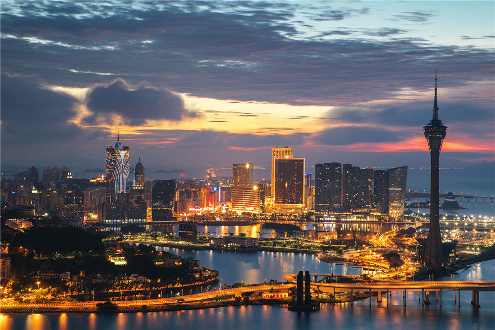 2018年6月16日,澳門,城市風(fēng)光。遠處的港珠澳大橋。徐小天/視覺中國