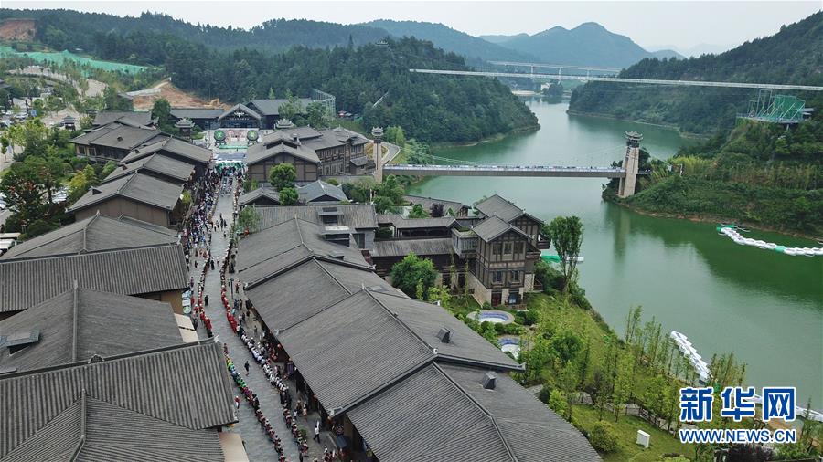 7月2日無人機(jī)拍攝的丹寨萬達(dá)小鎮(zhèn)一角。2017年7月,貴州省丹寨縣的丹寨萬達(dá)小鎮(zhèn)對(duì)外開放。兩年來,丹寨萬達(dá)小鎮(zhèn)游客接待量持續(xù)增長(zhǎng),為700余名貧困戶提供就業(yè)崗位,有力助推了丹寨縣的脫貧攻堅(jiān)工作。新華社記者歐東衢攝