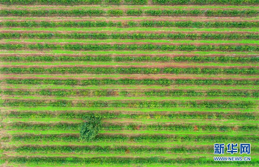河南省洛寧縣馬店鎮(zhèn)關廟村金珠沙梨種植基地(10月9日無人機拍攝)。新華社記者李嘉南攝