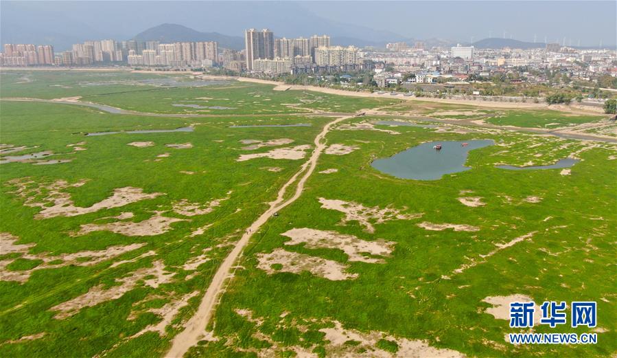 這是江西省廬山市鄱陽(yáng)湖湖區(qū)干涸的情況(10月9日攝)。新華社記者胡晨歡攝