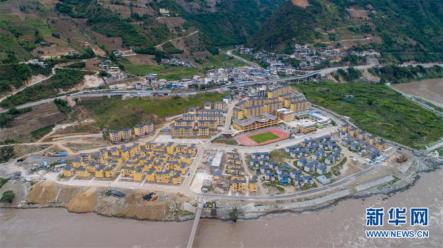 建于怒江邊的大興地鎮(zhèn)維拉壩“珠海小區(qū)”已初現(xiàn)規(guī)模(6月24日無人機(jī)拍攝)。新華社記者胡超攝