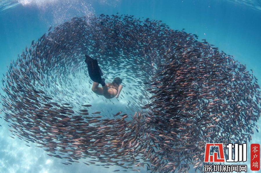 2018年12月24日報道(具體拍攝時間不詳),這張驚艷的照片記錄了沙丁魚大軍為一位幸運的潛水員讓路的瞬間,數(shù)百萬條銀光閃閃的小魚兒簇擁圍繞在他的一側,恰似熠熠生輝的繁星,如眾星捧月一般畫面十分驚艷。