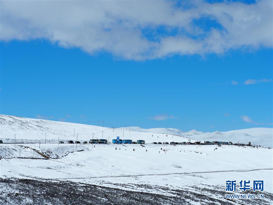 10月17日,在川藏線高爾寺山至理塘路段,成隊(duì)的車(chē)輛停在觀景臺(tái)附近。新華社記者王迪攝