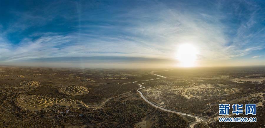 這是在塔克拉瑪干沙漠腹地拍攝的克里雅河(11月18日無人機全景拍攝)。